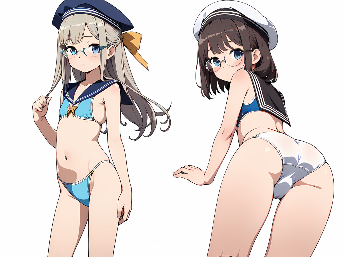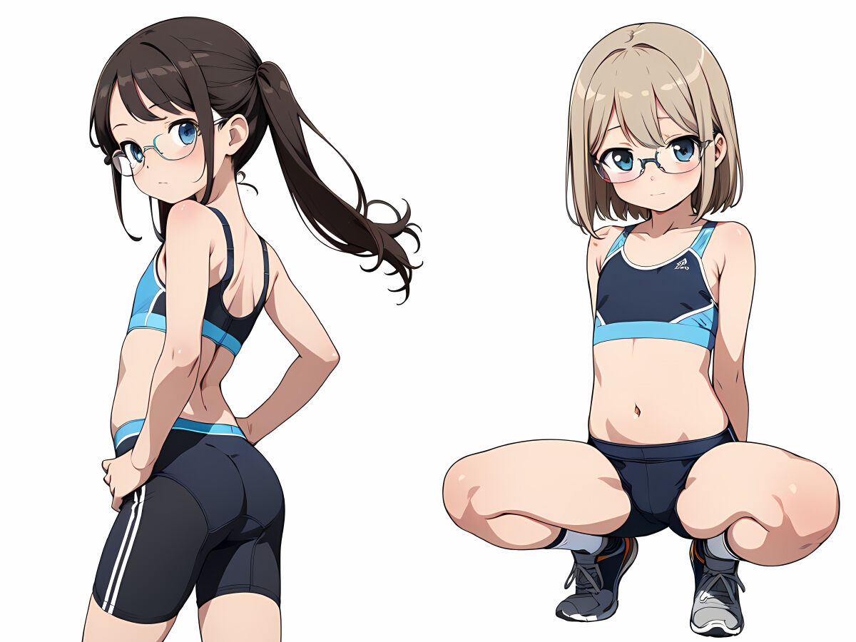 眼鏡ッ娘のブルマ・スクール水着・水着・下着姿を収録したイラスト集(AI生成作品)