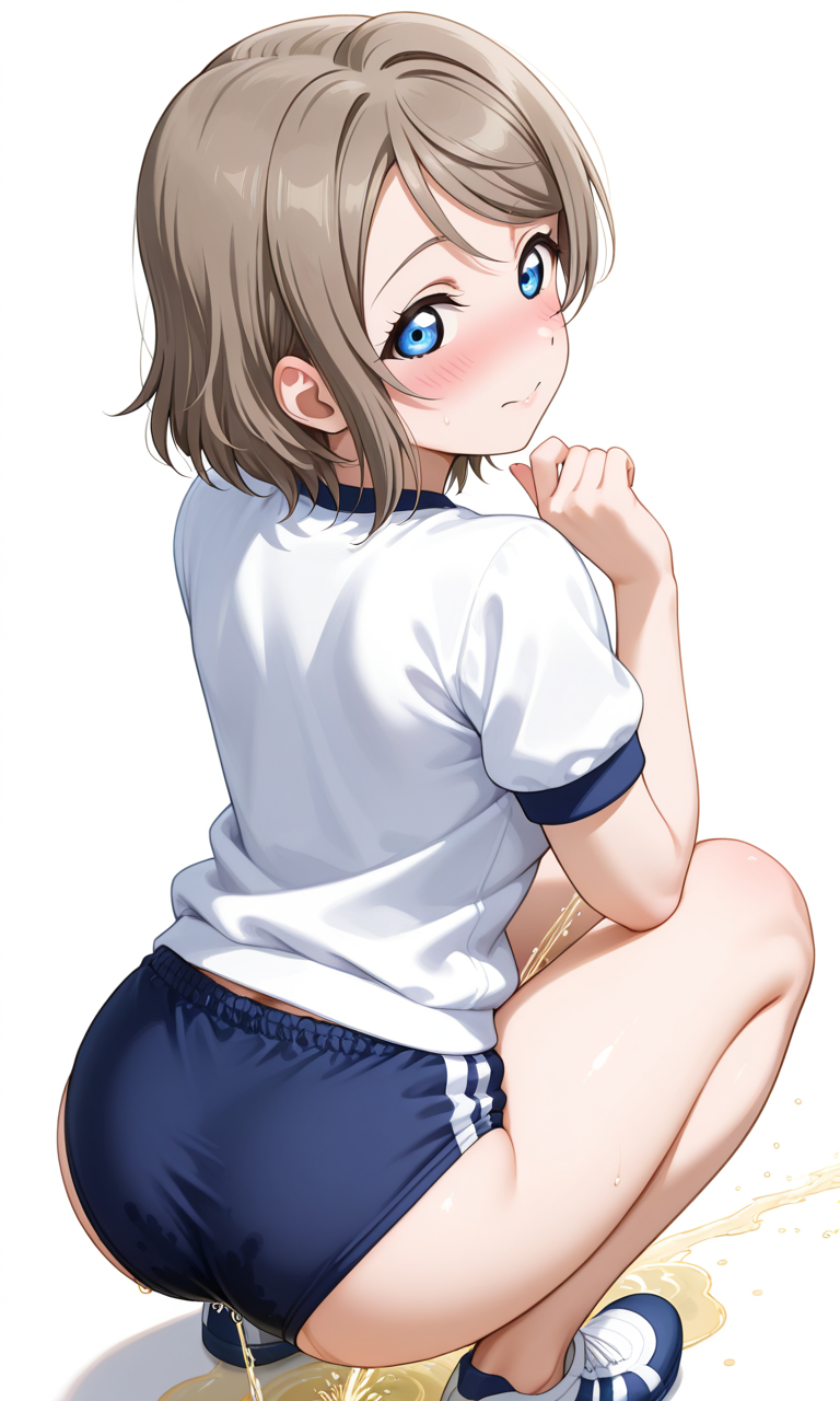 『ラ〇ライブ!サ〇シャイン!!』から「渡◯曜」のブルマお漏らしをAI画像生成してみました