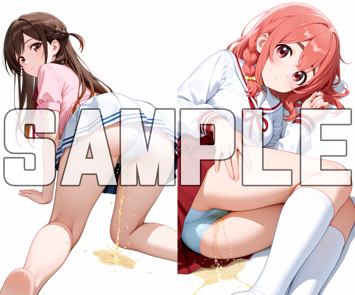 シチュエーションで着衣おしっこお漏らししている姿を収録したCG集(AI生成作品)です。