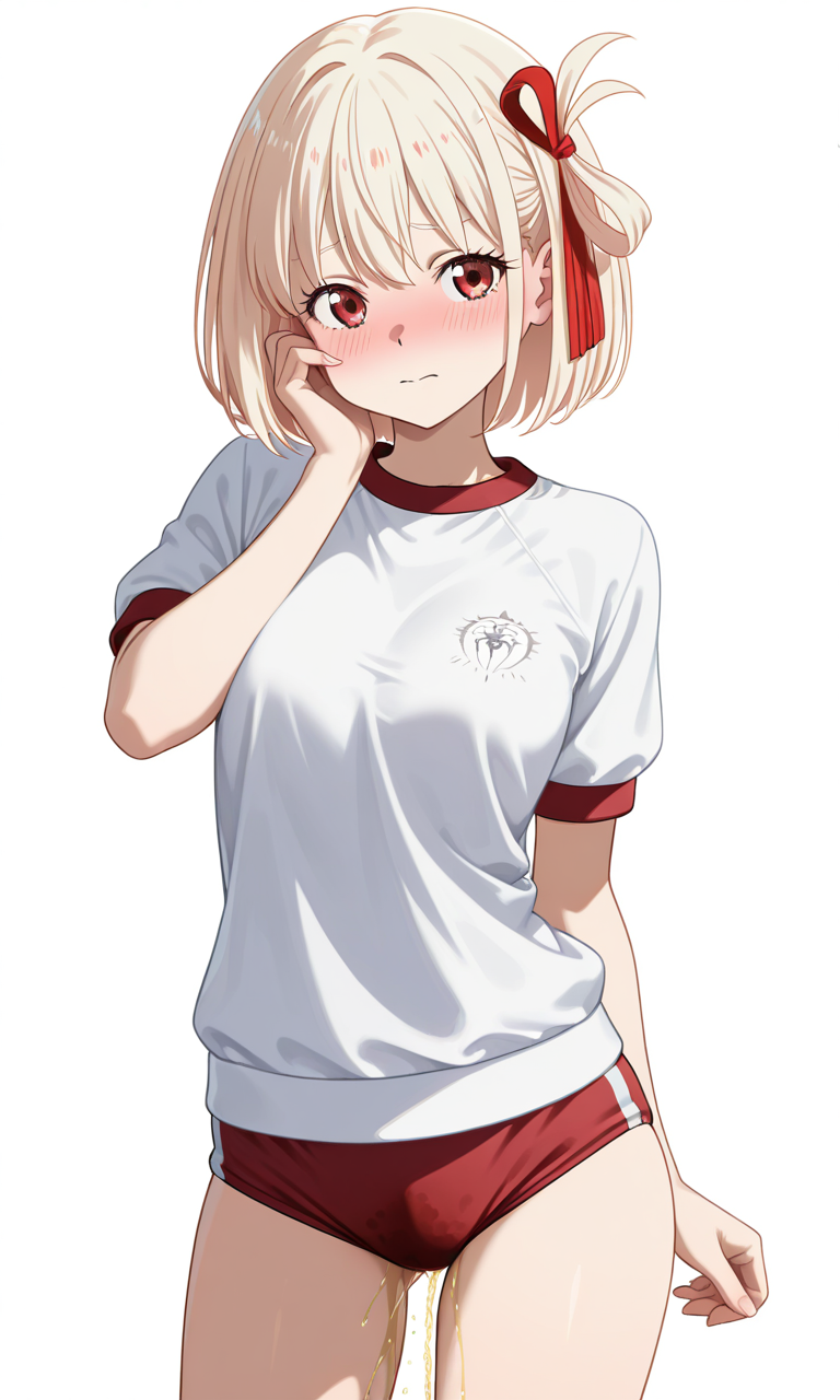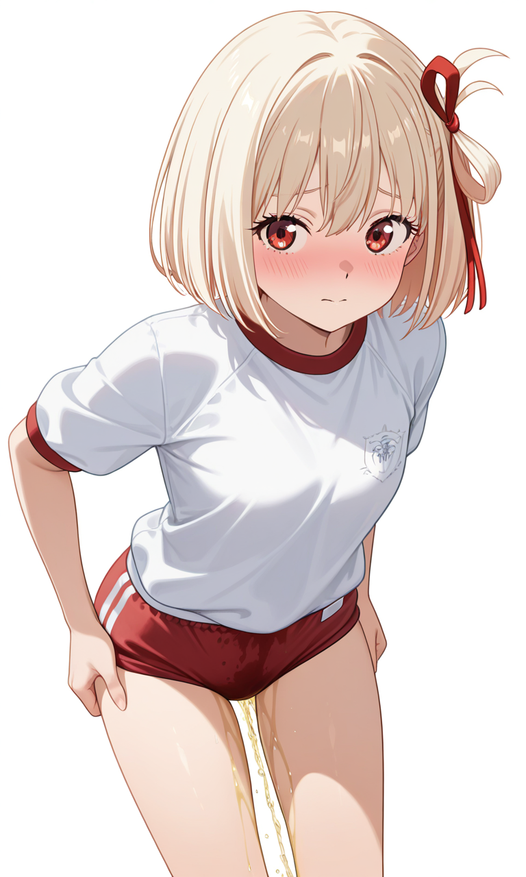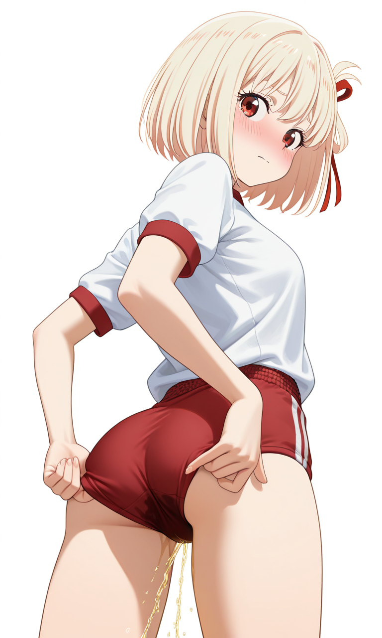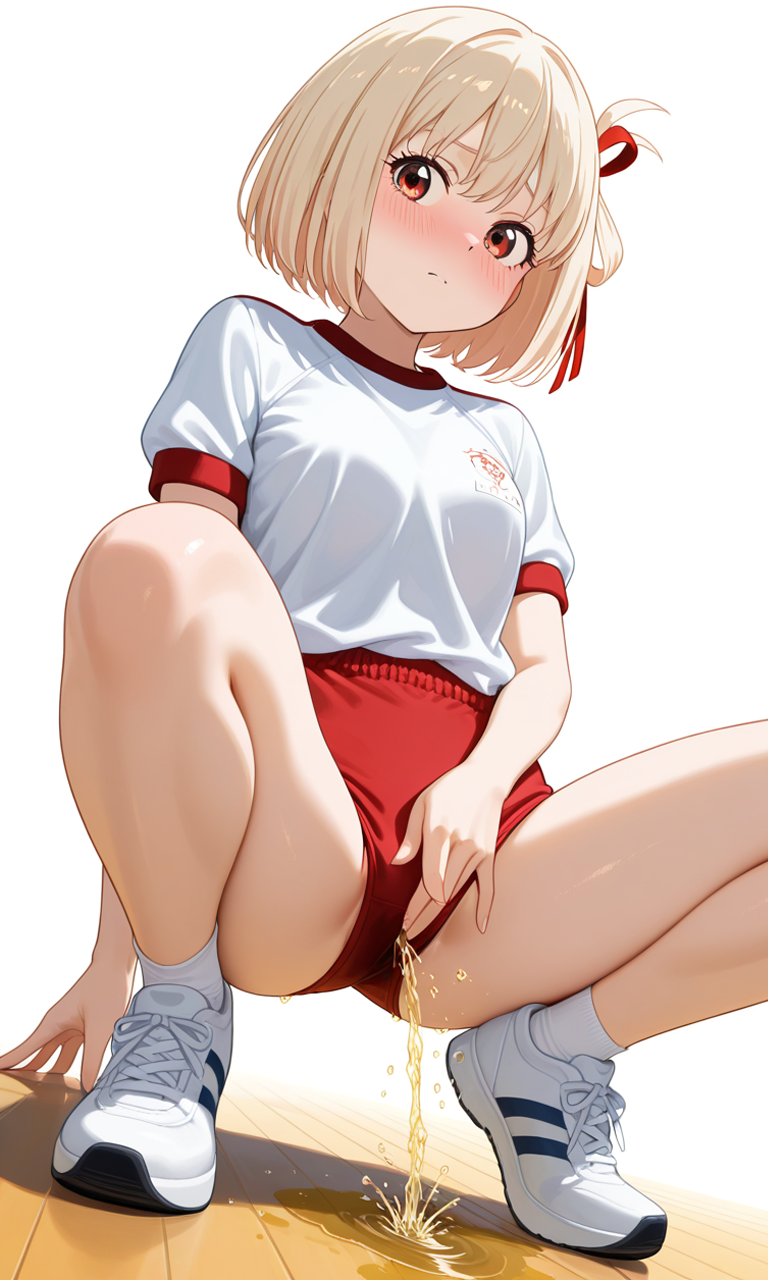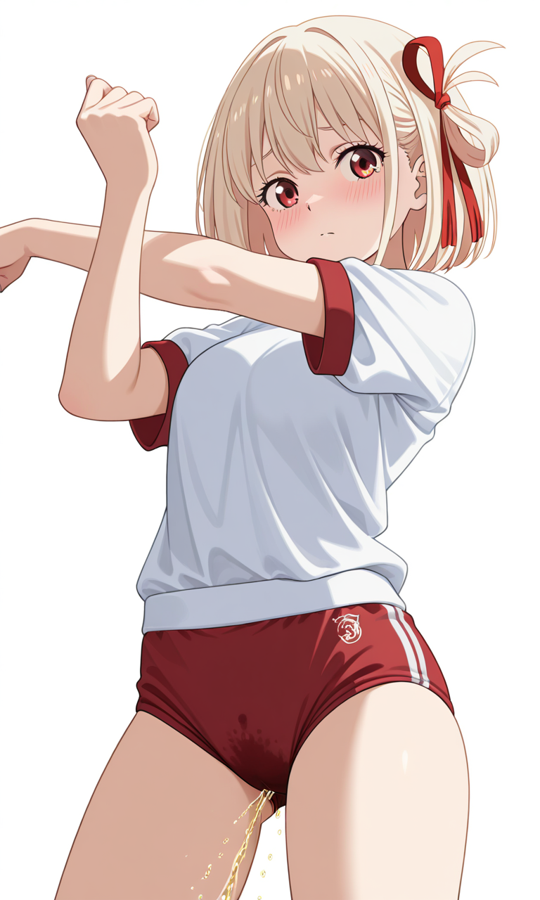 で今回は『おしっこお漏らしする「錦〇千束」』のブルマお漏らしVer.をAI画像生成してみました