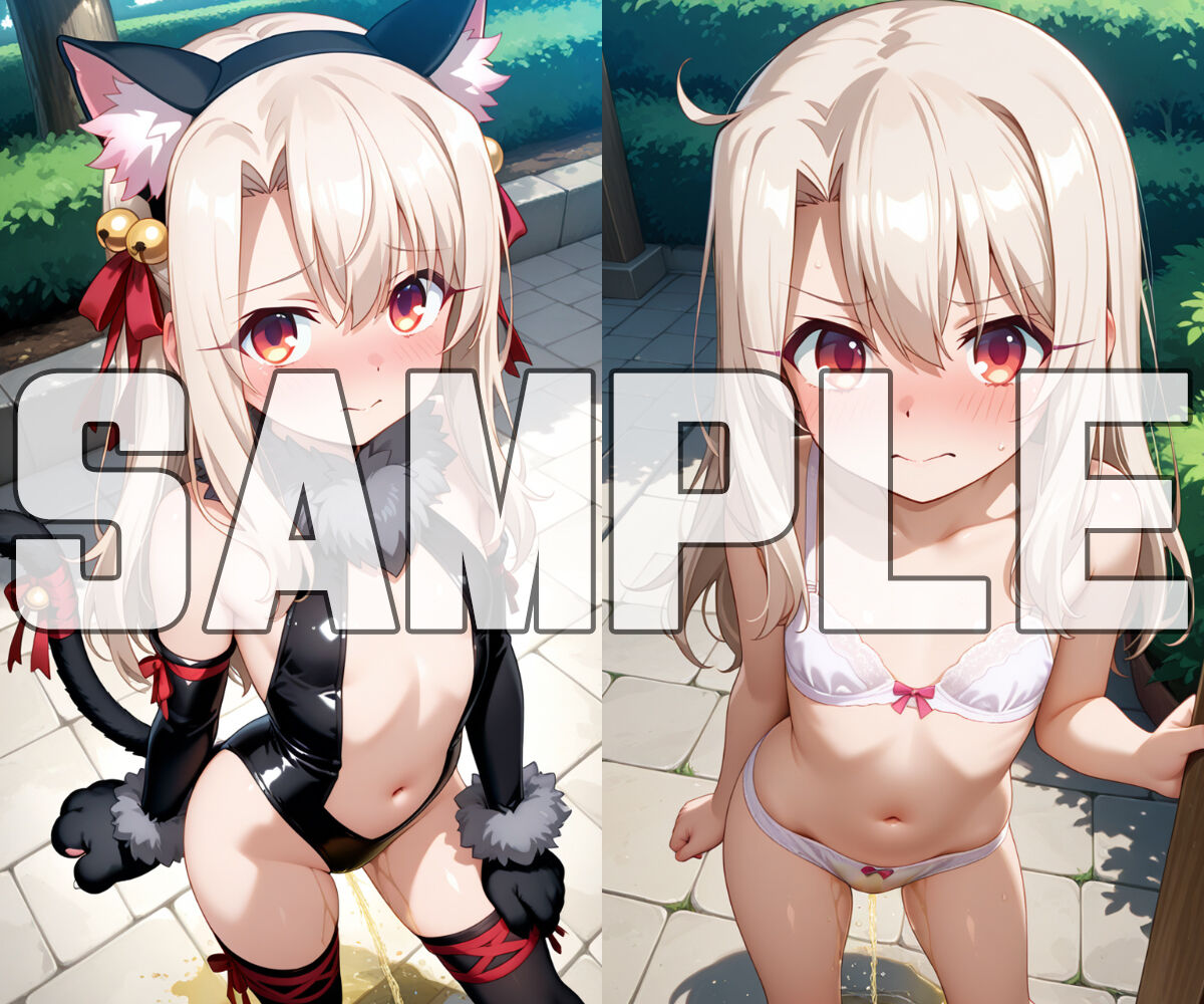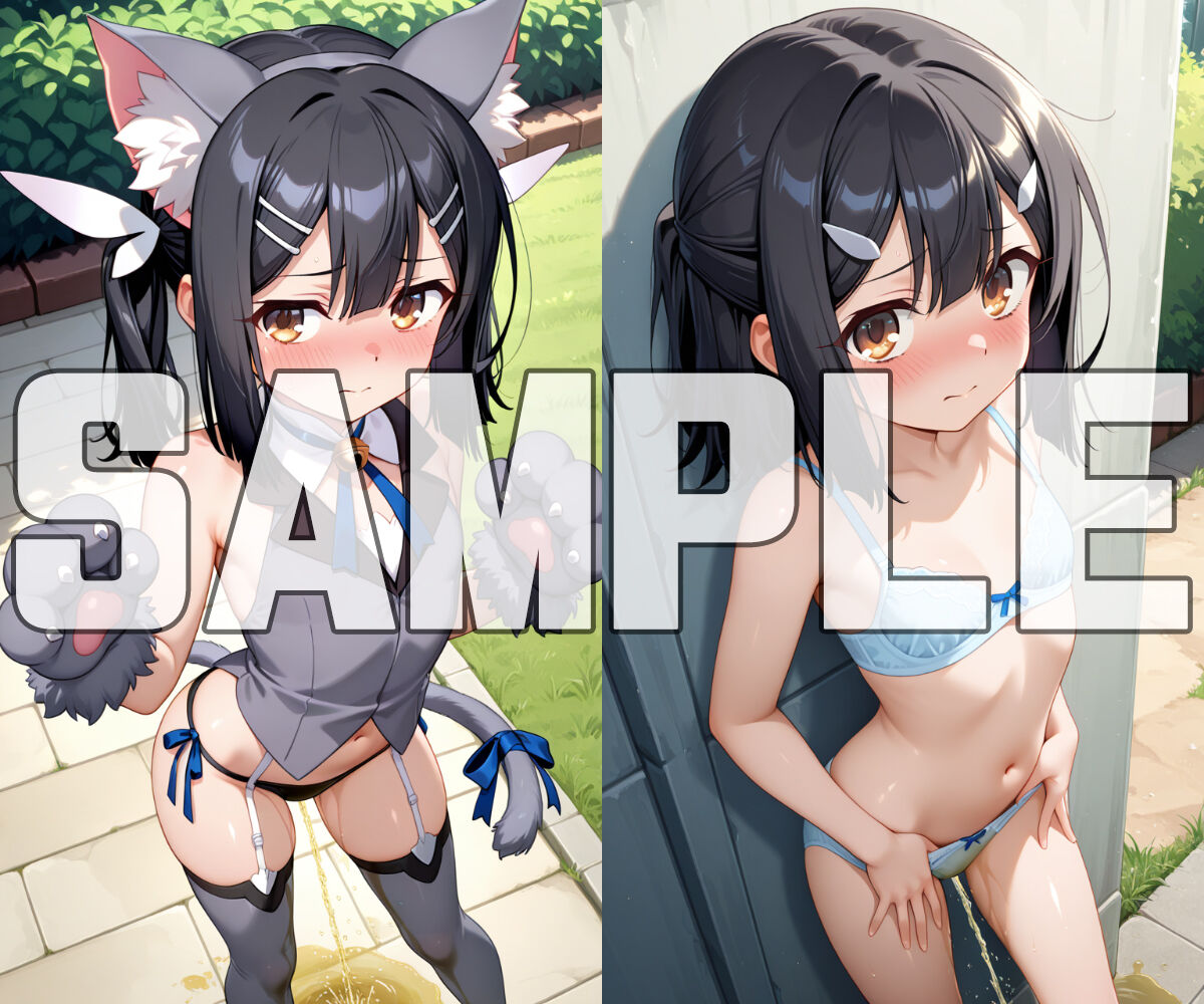 すっぽんぽんでおしっこ(放尿)している姿を収録したCG集(AI生成作品)