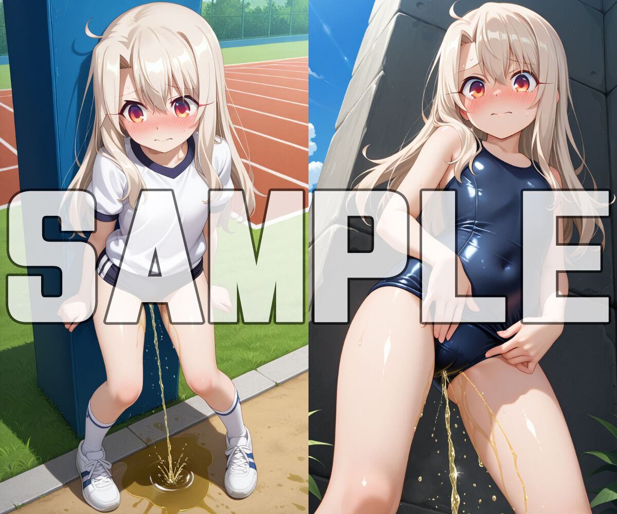 (制服・魔法少女衣装・ビースト・下着・体操着・スク水など)でおしっこお漏らしをするCG集(AI生成作品)
