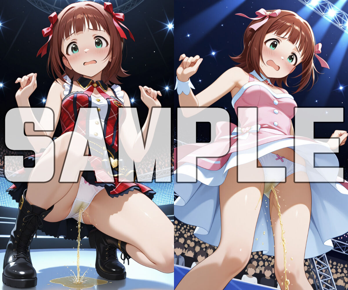 おしっこお漏らしをする「高〇やよい」メインのCG集(AI生成作品)
