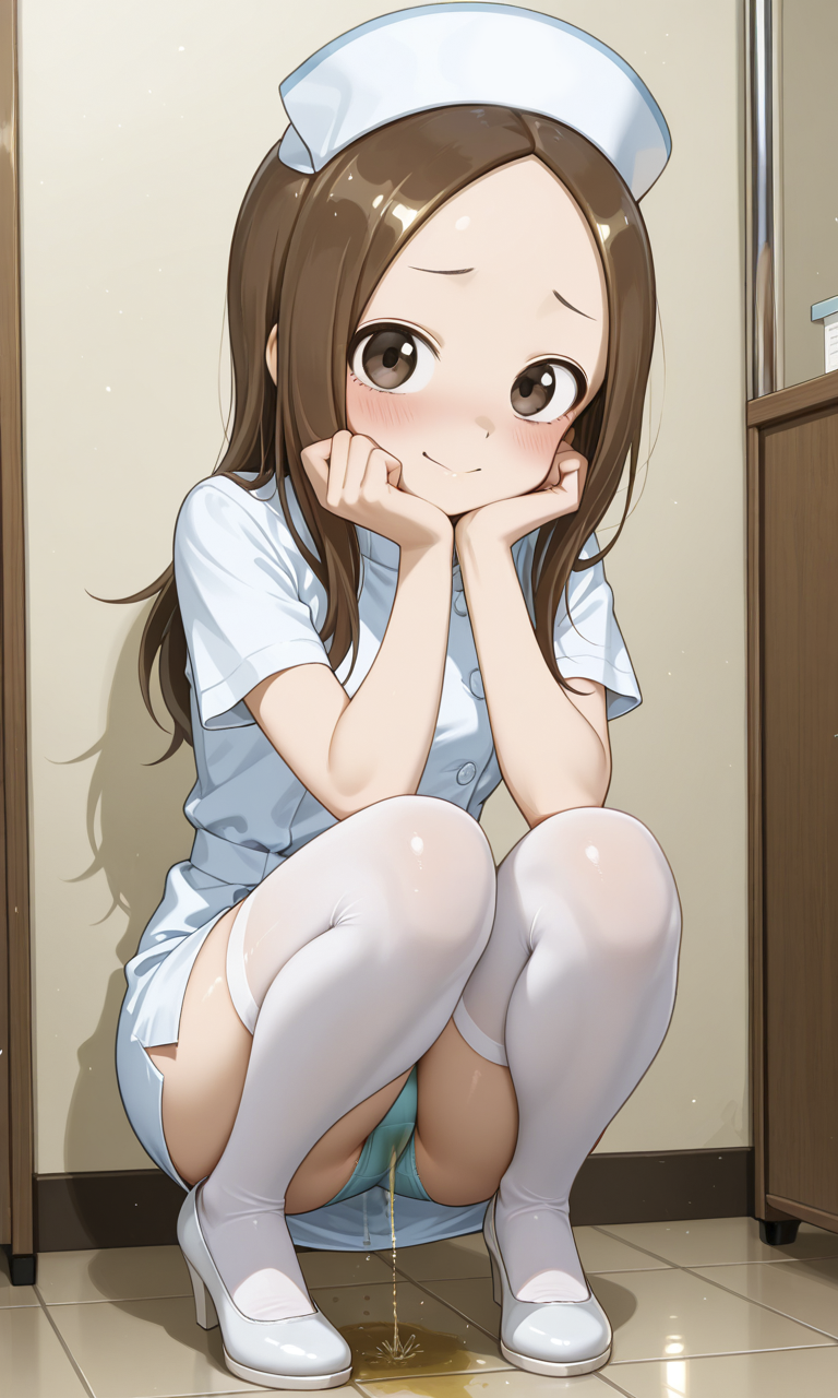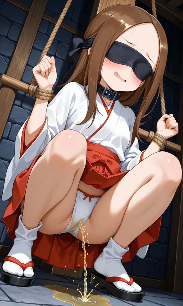目隠しや緊縛されたナースの「高〇さん」がおしっこお漏らしチャレンジするAI画像生成してみた。