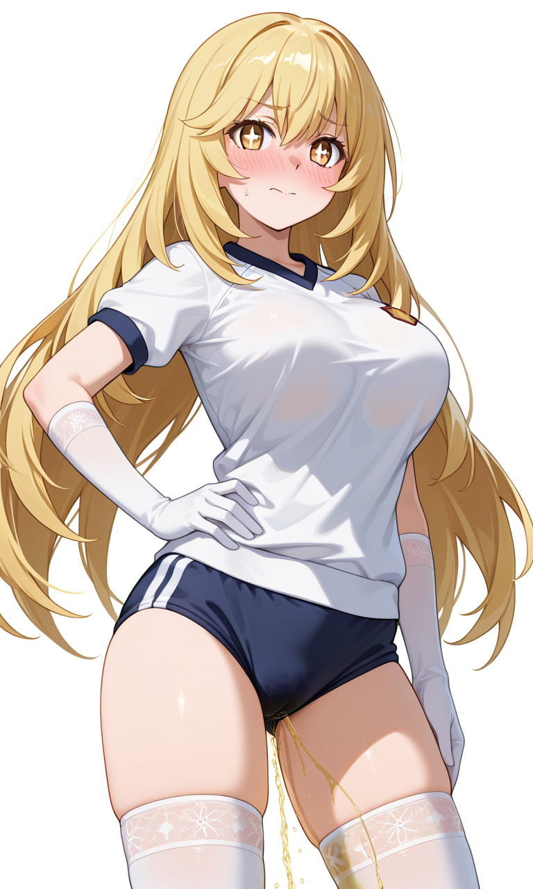 恥じらいながらブルマお漏らししている姿を収録したCG集(AI生成作品)です。