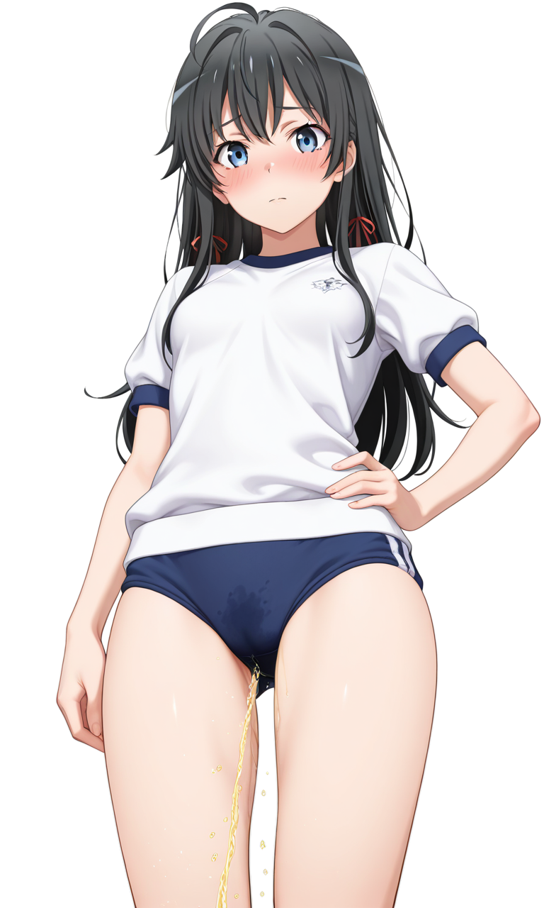 おしっこが我慢出来ず恥じらいながらブルマお漏らししている姿を収録したCG集(AI生成作品)です。